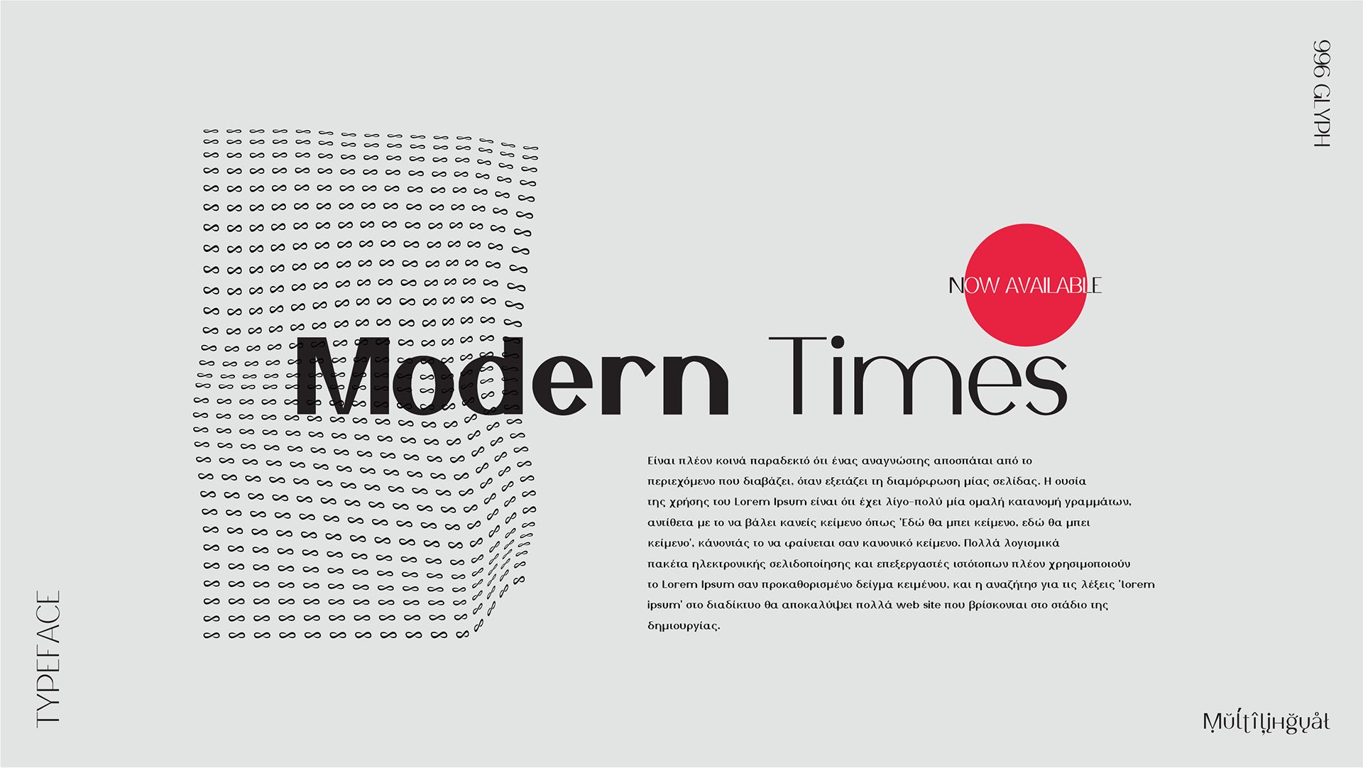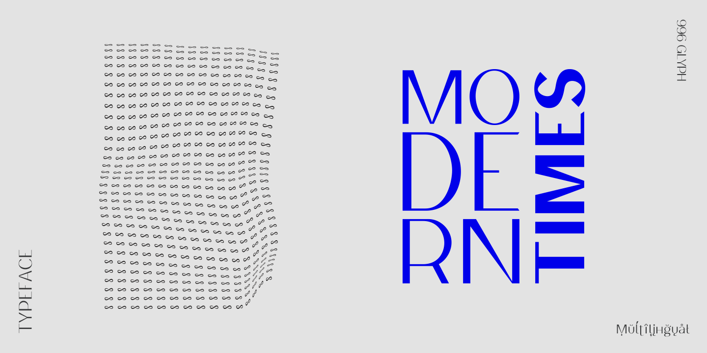 Modern Times font. 996 glyph, 100+ Languages Set. Multilingual support: Latin basic, Latin Extended, Cyrillic, Greek, Georgian, Central Europe, Turkish, Baltic, Romanian, Euro, West European diacritics Please test your alphabet and buy