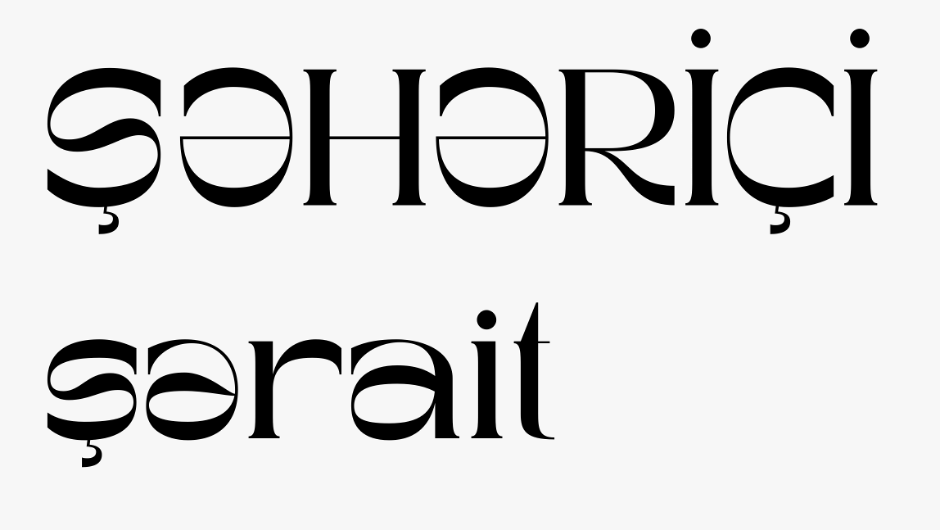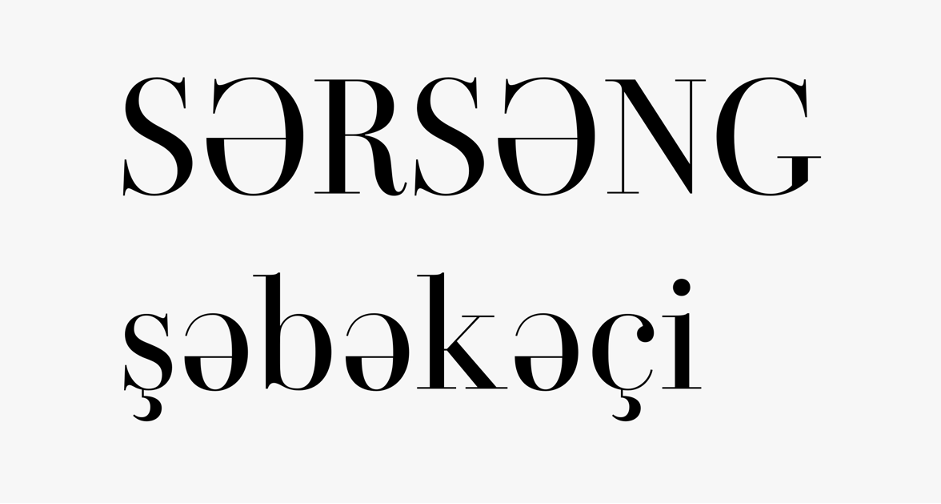 As you can see, in fonts with more serif styles, the small "ə" letter doesn't appear as appealing. In sans serif fonts, although it may not be as striking at times, upon closer inspection, we still notice irregularities in its design. So, how should proper design be? I'll explain it to the best of my ability. If you noticed, in the fonts I showed as examples, in the words I wrote contained the letters Cc, G, Ss, and a. My intention in showing words starting with these letters is that when creating the Əə letters, you should design them using the upper terminals. It should be remembered that the small "ə" letter should be devoid of narrow like from the "o" letter and wide than the "e" letter. However, you may not always adhere to this strictly or differentiate slightly. This is more applicable for thicker fonts. The capital "Ə" letter, it can be devoid of narrow like from the "O" letter or be sized similar to C, G. The most important thing is that the middle line in both letters (Əə) should be at least partially above. This is something designers often overlook. They rotate the e letter but don't raise the middle line. For the capital Ə letter, the middle line should be slightly below the "H" letter or at the level of the "H" letter. In sans serif fonts, if you create a family font, you should compensate for this more successfully. Generally, in thicker fonts, the appearance of the middle line should be more contrasting. Let me visually demonstrate what I've written. For example, let's look at the second font, "Times."