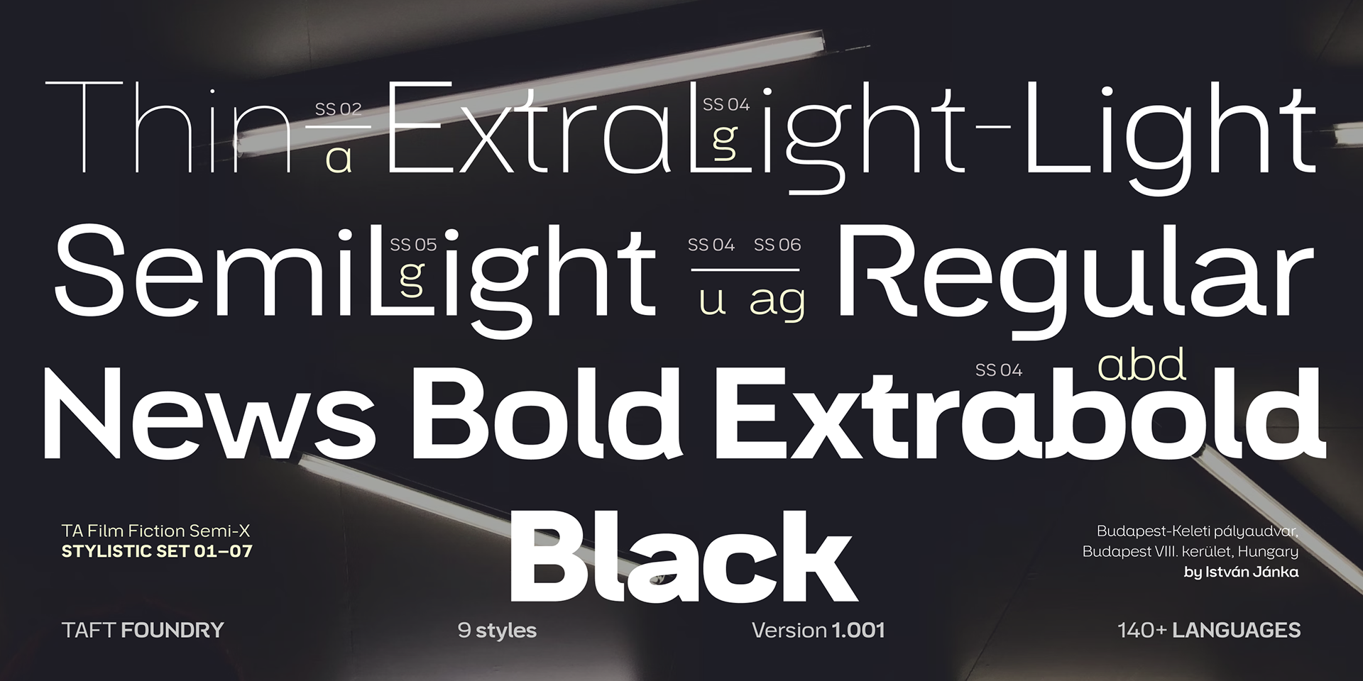 Film Fiction Semi Expanded has been updated and will now beautify your designs under the name TA Film Fiction Semi-X. We've already updated and revitalized TA Film Fiction Semi-X to ensure it perfectly matches your evolving creative vision. The inclusion of tabular figures, old-style figures and alternative glyphs expands your design palette and allows you to adapt the font to your unique style. TA Film Fiction Semi-X has been updated experience the appeal – this can be your font of choice to enhance your brand identity, cinematic efforts and editorial design. This brilliant typeface is not just a typographic tool, but a creative catalyst for headlines, logos, web elements, signage, posters and fashion apparel, packaging. TA Film Fiction Semi-X does not follow trends, it defines them, imbuing each project with a true modern essence.